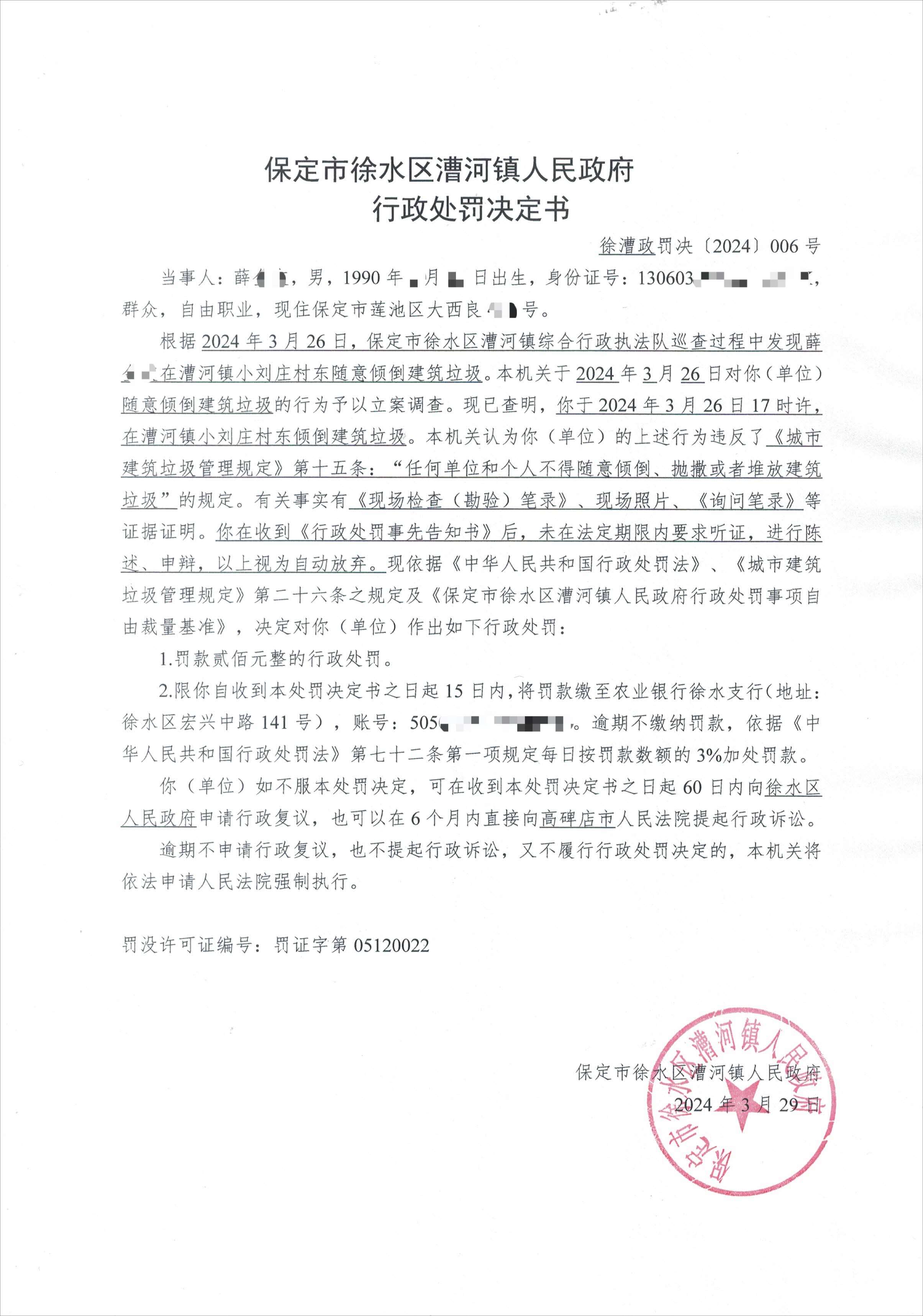 行政处罚决定书徐漕政罚决〔2024〕006号