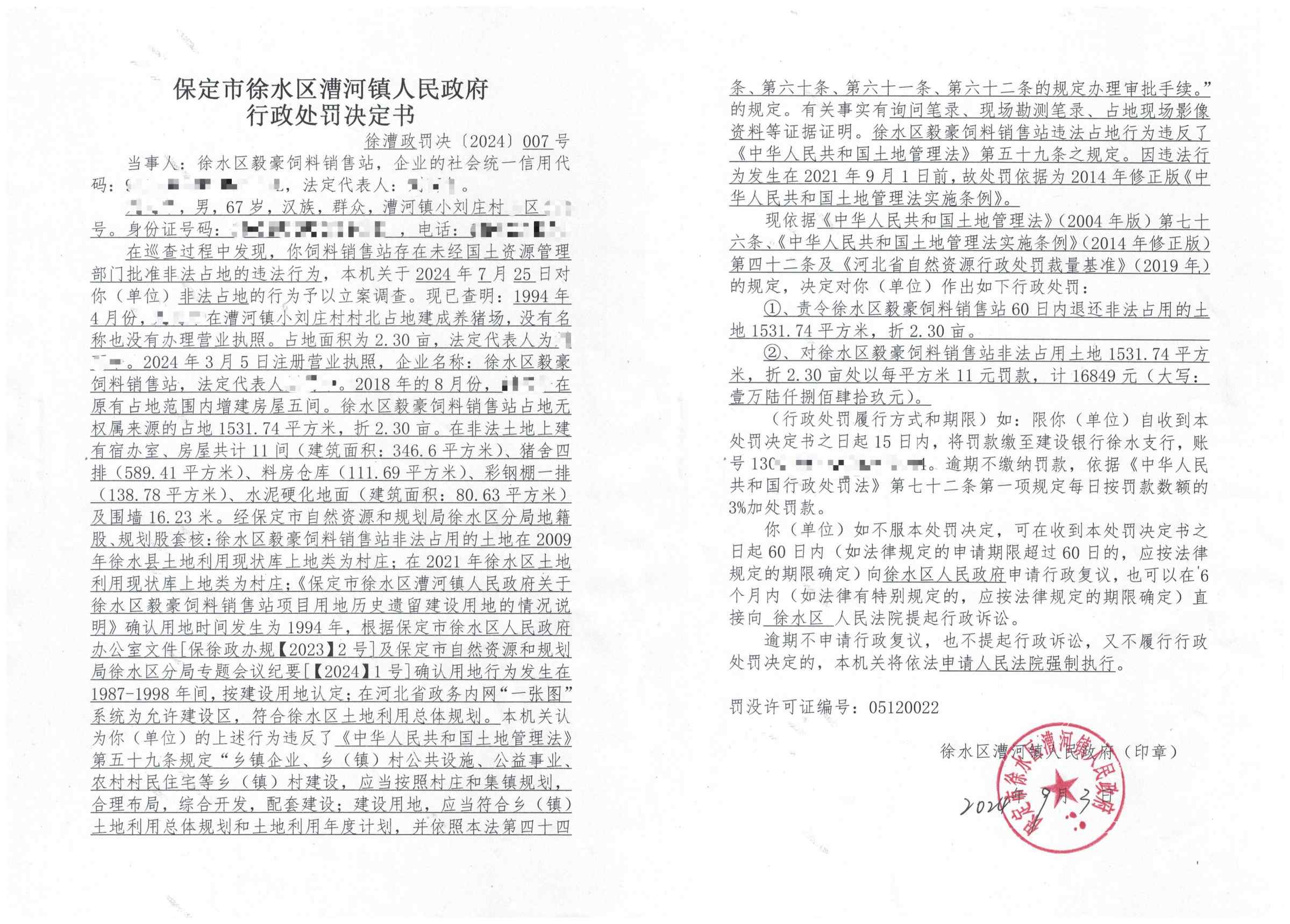 行政处罚决定书徐漕政罚决〔2024〕007号
