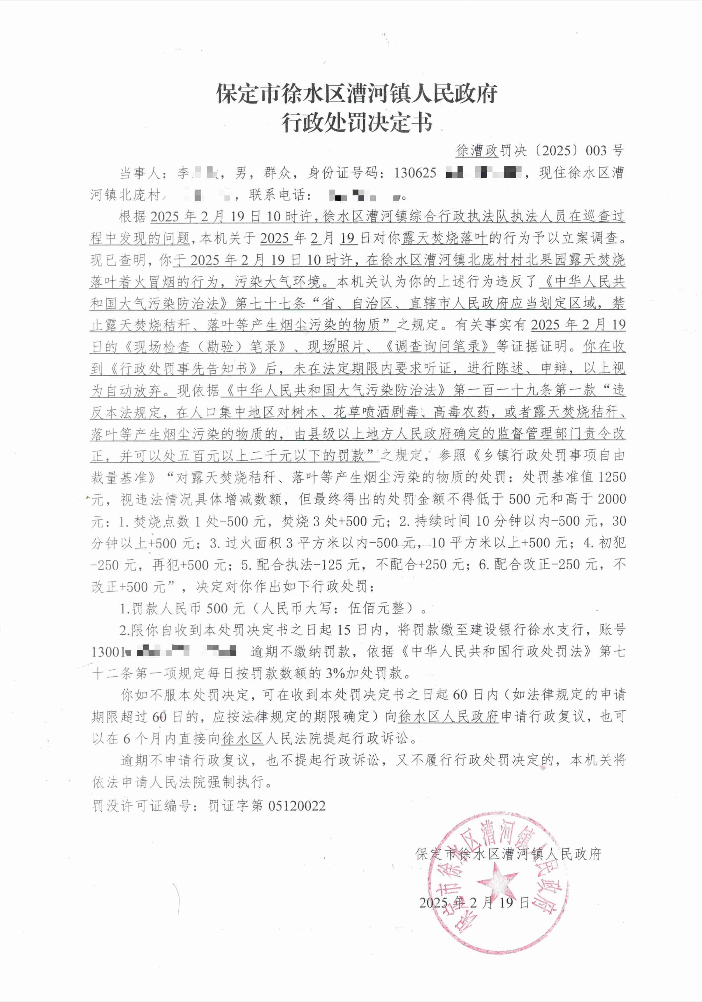行政处罚决定书徐漕政罚决〔2025〕003号