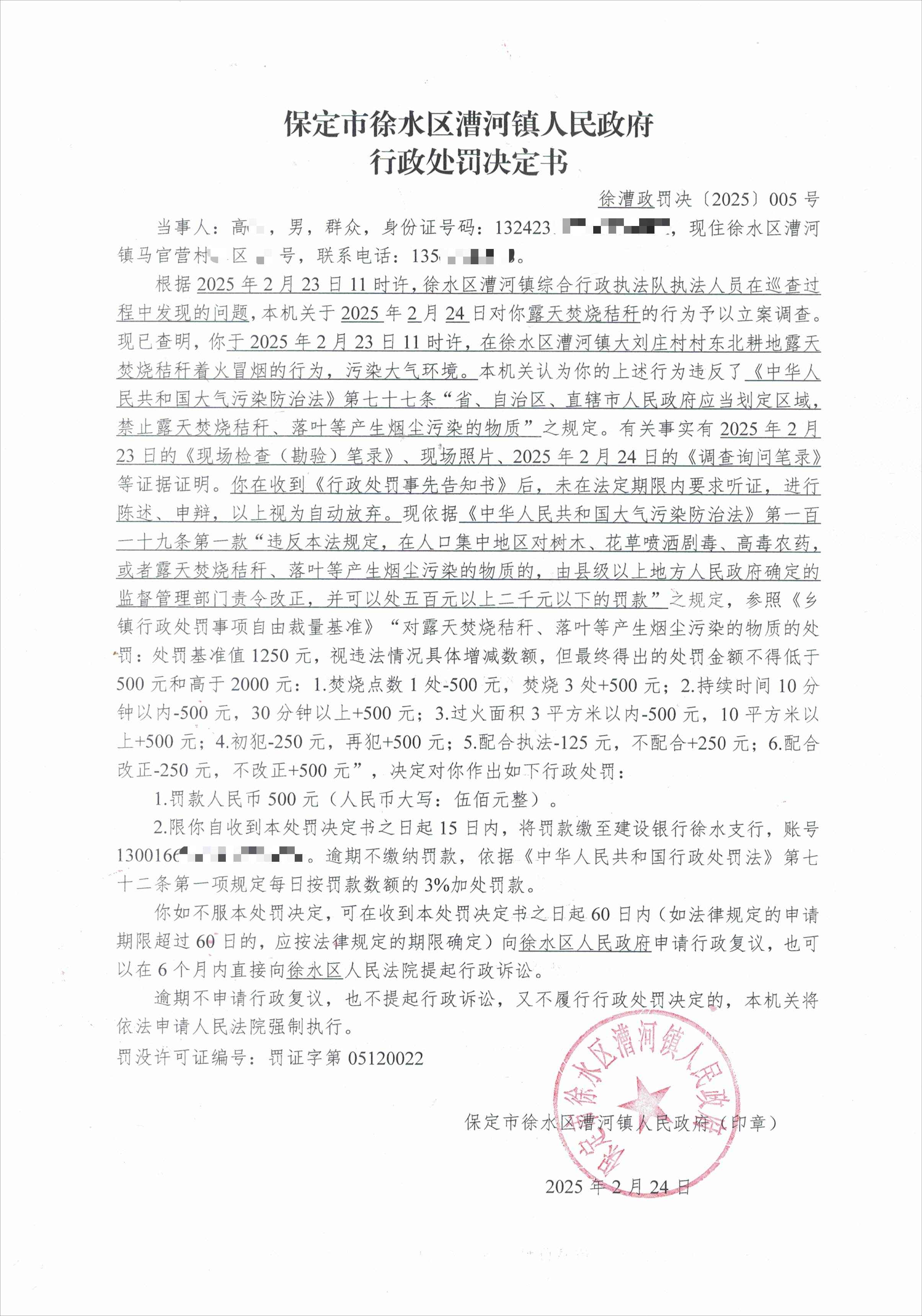 行政处罚决定书徐漕政罚决〔2025〕005号