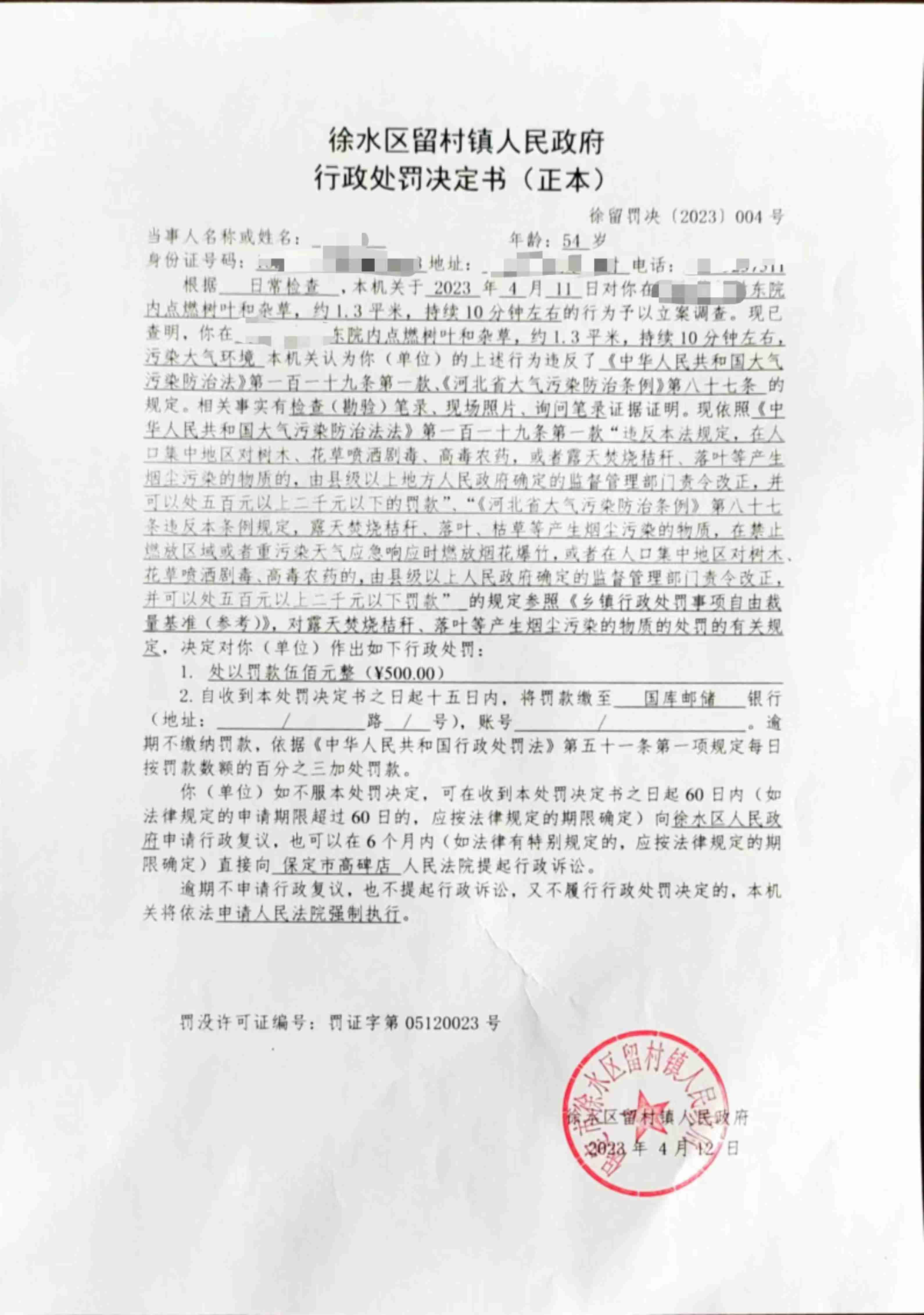 行政处罚决定书徐(留)罚决〔2023〕004号