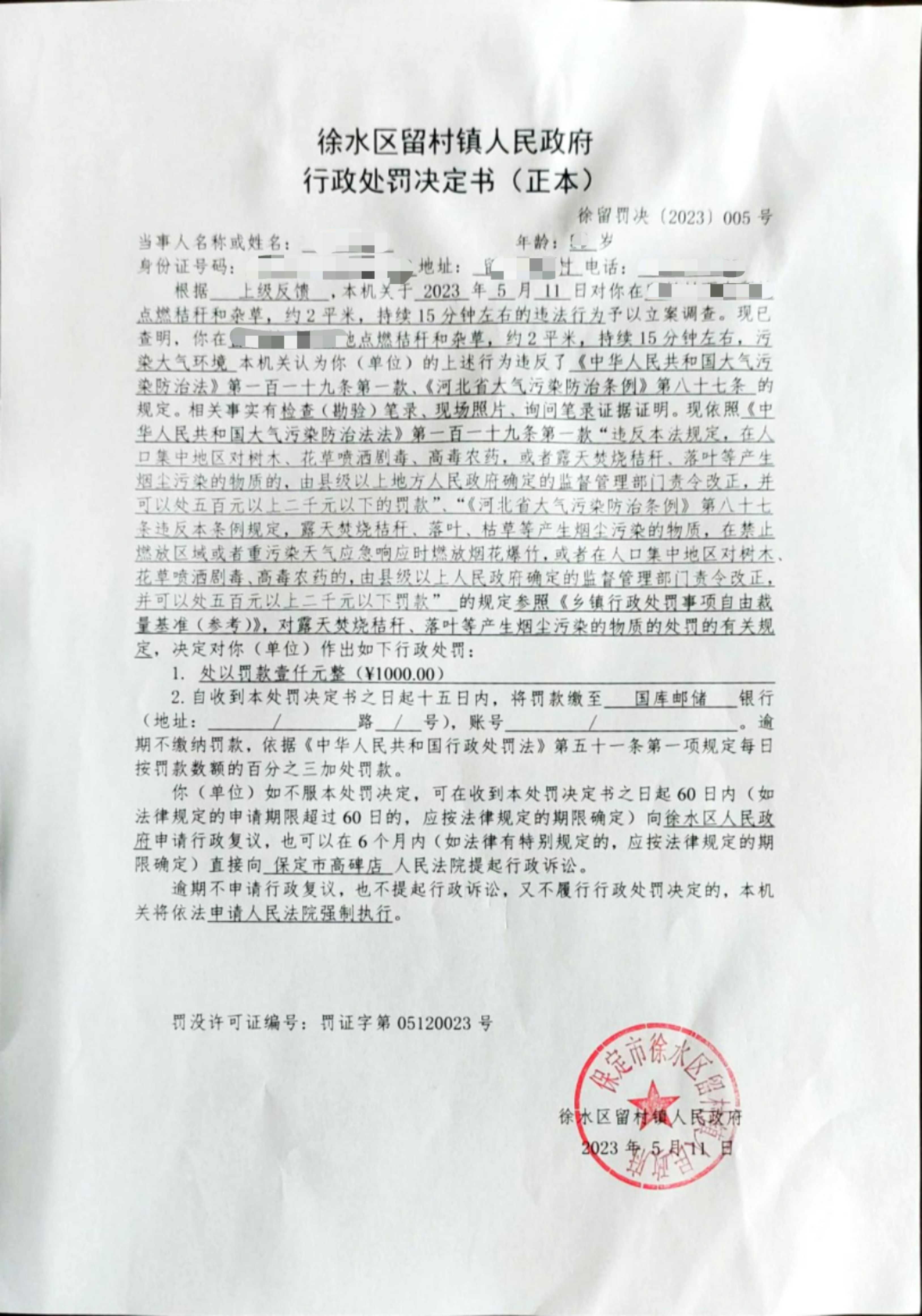 行政处罚决定书徐(留)罚决〔2023〕005号