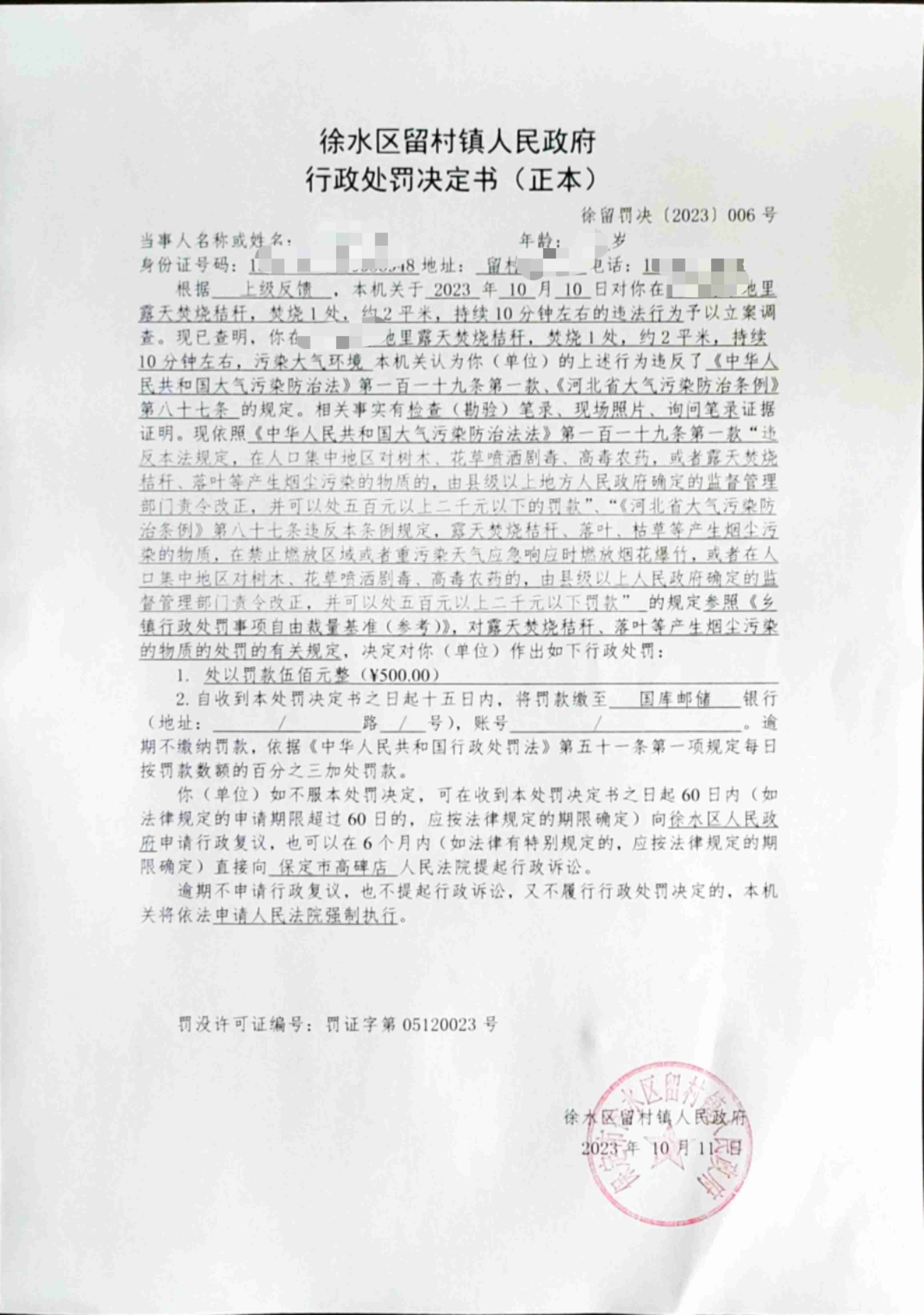 行政处罚决定书徐(留)罚决〔2023〕006号