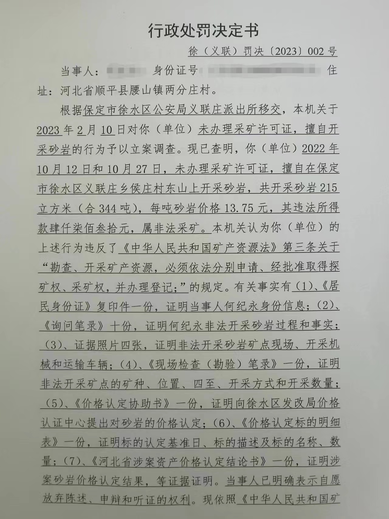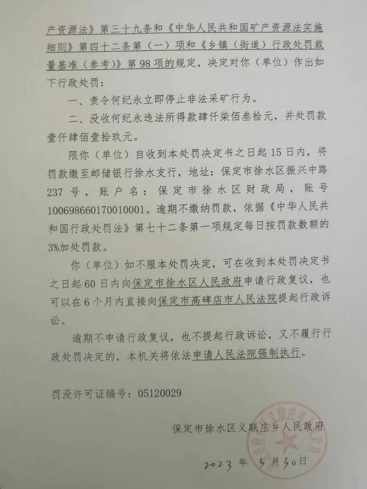 徐(义联)罚决【2023】002号