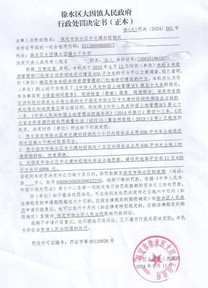保定市徐水区某某建材经销处违法占地案